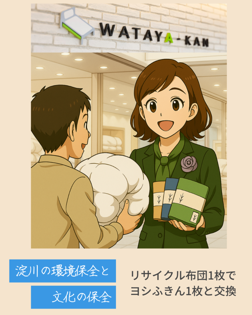 - 現代の物々交換!不要な羽毛布団が高槻市ふるさと納税品ヨシふきんと・・・